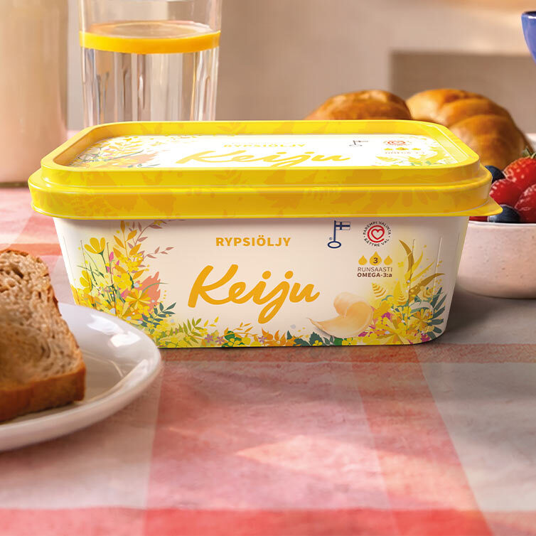 Hyvänmakuisista Keiju-tuotteista löytyy laaja valikoima vaihtoehtoja koko perheelle ja monenlaisiin tarpeisiin. Tuotteiden pääraaka-aine on luonnon oma rypsiöljy, joka sisältää runsaasti meille kaikille tärkeitä omega-3-rasvahappoja. Kasviöljypohjaisiin Keiju-tuotteisiin kuuluvat levitteet, juokseva margariini ja öljyt. Keiju-levitteet ja -öljyt valmistetaan Suomen ainoassa margariinitehtaassa Raisiossa.
